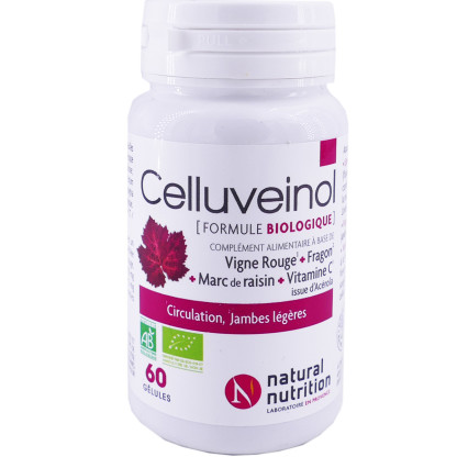 CELLUVEINOL BIO discount de NATURAL NUTRITION, un complément alimentaire en gélules végétales à base d’extraits de plantes et vitamine dont de la vigne rouge pour retrouver des jambes légères, dans votre parapharmacie en ligne à prix discount.