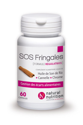 SOS FRINGALES de NATURAL NUTRITION, est un complément alimentaire à base d'huile de son de riz et de chrome et de cannelle, qui aident à maintenir un taux glycémique normal.