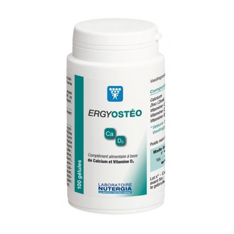 ErgyOstéo Ossature du laboratoire NUTERGIA, est un complément alimentaire à base de zinc et de calcium, qui aident au maintien d'une ossature normale.