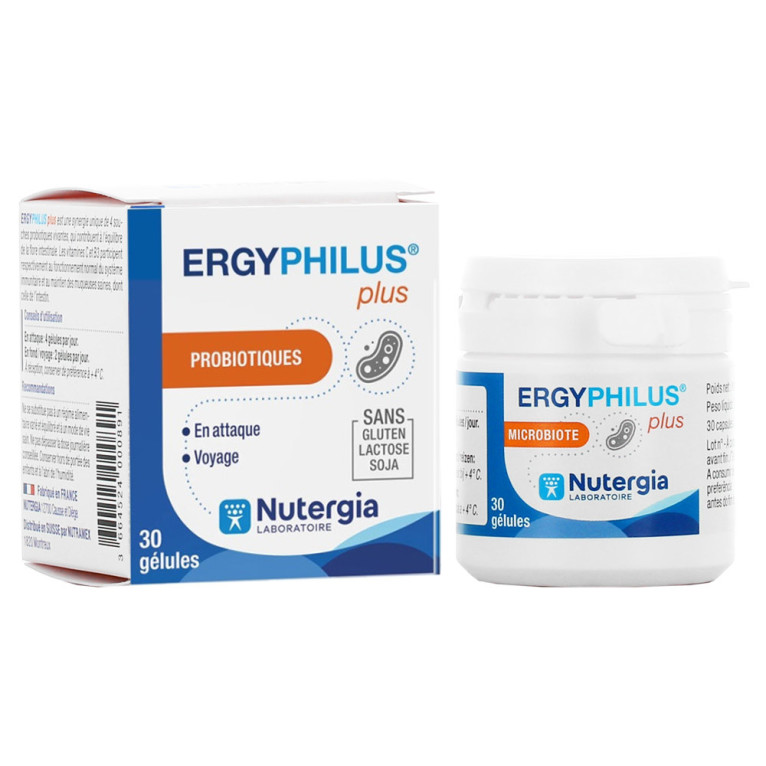NUTERGIA ERGYPHILUS PLUS PROBIOTIQUES 30 GELULES est un complément alimentaire en vente en ligne, sur le site de votre parapharmacie à prix discount.