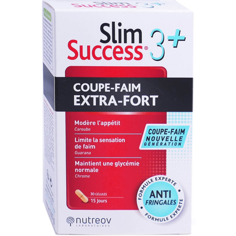 SLIM SUCCESS 3+ COUPE FAIM EXTRA FORT discount de NUTREOV PHYSCIENCE, le meilleur de la science et de la nature dans un complément alimentaire à base de graine de Caroube aux propriétés épaississantes et satiétantes et d'extrait sec de graine de Guarana qui modère l’appétit, dans votre parapharmacie en ligne à prix discount.