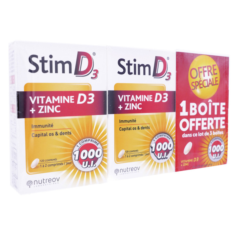 NUTREOV STIM D3 VITAMINE D3 + ZINC 3X120 COMPRIMES en vente en ligne sur le site de votre parapharmacie à prix discount.