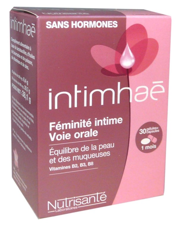 Depuis 1992, Les laboratoires NUTRISANTE proposent aux consommateurs en quête de bien-être des produits innovants, efficaces, naturels et sûrs pour l’organisme à travers des gammes complètes de compléments nutritionnels, tisanes et infusions. INTIMHAE est un complément alimentaire sans hormones à base de 5 milliards de lactobacillus acidophilus qui sont des micro-organismes vivants, de vitamines B, D et E, de zinc, d’huile de bourrache qui apporte de l’acide gamma linoléique, et d’acides gras polyinsaturés (EPA DHA) à longue chaîne de la famille des oméga 3. Sous forme de gélules et capsules, INTIMHAE va équilibrer la flore vaginale et les muqueuses et rééquilibrer la peau pour retrouver confort et beauté. L’organisme sera renforcé en assurant le bon fonctionnement du système immunitaire, et les cellules seront protégées du stress oxydatif. Après une naissance ou lors des périodes prémenstruelles ou ménopausées, la peau restera belle et les muqueuses fragiles équilibrées, pour retrouver du confort au quotidien.