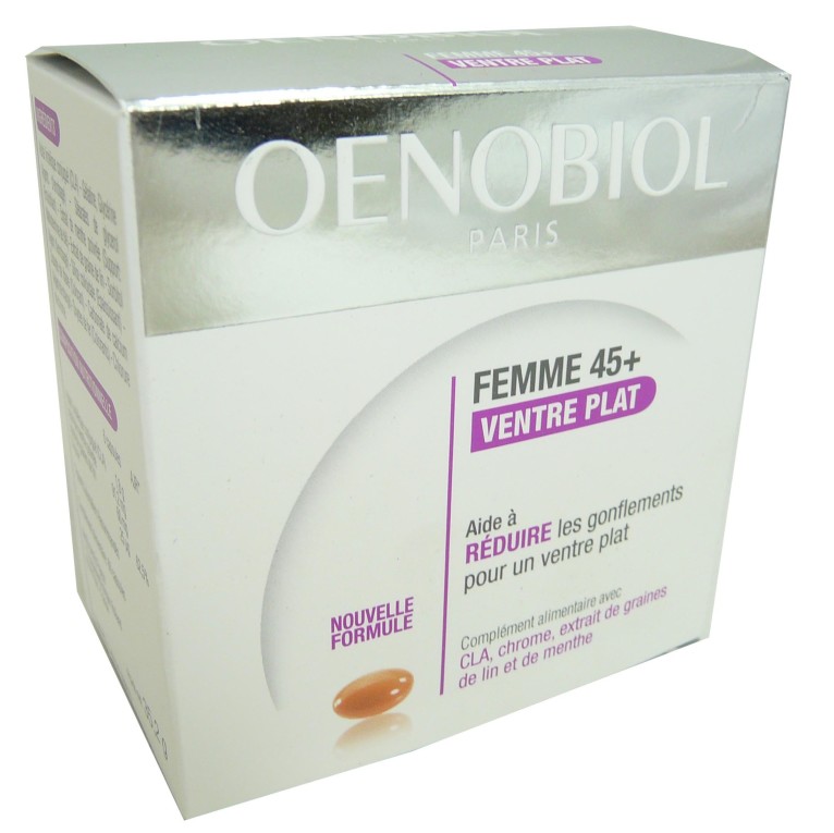 Oenobiol est la marque n°1 en France dans le domaine de la nutrition beauté, et développe depuis 1985 des compléments alimentaires de haute qualité pour répondre à tous les besoins beauté féminins : solaire, anti-âge, peau, cheveu, minceur… La gamme femme 45+propose des compléments alimentaires spécialement conçus pour maintenir la beauté et la vitalité des femmes en période de ménopause. Oenobiol Femme 45+ Ventre plat conditionné sous forme de capsules, est spécialement formulé pour aider à limiter les désagréments liés au bouleversement hormonal en phase de ménopause, réduire les ballonnements indésirables et aider à retrouver un ventre allégé. Oenobiol Femme 45+ Ventre plat est composé de chrome, d’acide linoléique conjugué, d’un extrait de graine de lin et d’un extrait de menthe dont l’association contribue à restaurer une taille affinée, une silhouette allégée.