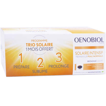 OENOBIOL est la marque n°1 en France dans le domaine de la nutrition beauté, et développe depuis 1985 des compléments alimentaires de haute qualité pour répondre à tous les besoins beauté féminins : solaire, anti-âge, peau, cheveu, minceur. La gamme Solaire Intensif propose des compléments alimentaires spécialement conçus pour améliorer la tolérance de la peau au soleil.