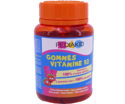 Gommes Vitamine D3 de PEDIAKID à prix discount, le complément alimentaire en gommes à mâcher arôme fraise destinés aux enfants et préadolescents avec de la vitamine D3 qui participe à une croissance et un développement osseux normaux des enfants dans votre parapharmacie en ligne discount.