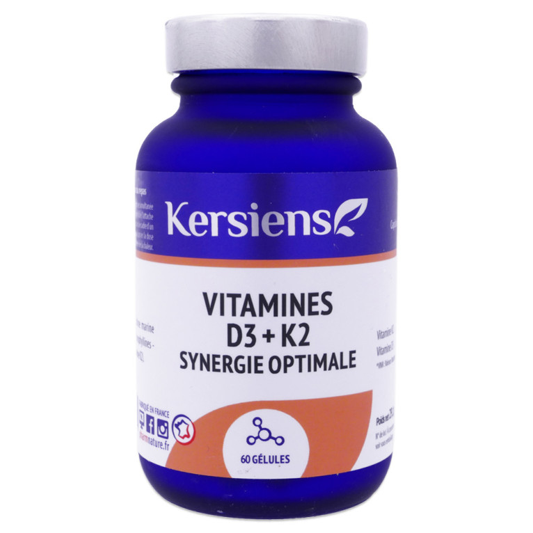 VITAMINES D3 + K2 Synergie Optimale des laboratoires KERSIENS à prix discount , le complément alimentaire complexe de vitamines D3 + K2 qui contribuent au maintien d'une ossature normale dans votre parapharmacie en ligne discount.