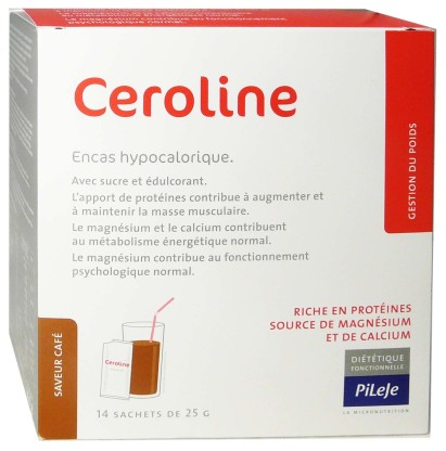 Céroline de PILEJE discount, un complément alimentaire hypocalorique en poudre dans votre parapharmacie en ligne à prix discount, à prendre en en-cas, lors d’un régime hypocalorique. Saveur café