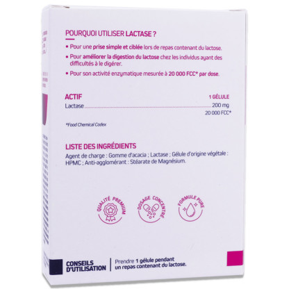 Pour 1 gélule : Lactase 200mg 20 000 FCC*. *FCC : Food Chemical Codex