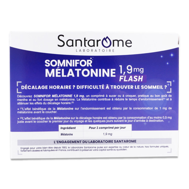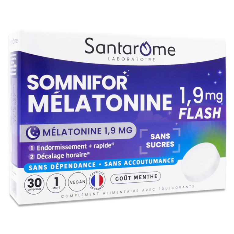 SANTAROME SOMNIFOR MÉLATONINE FLASH 1.9MG 30 COMPRIMÉS est disponible en vente en ligne à prix discount sur Pharmashopdiscount.
