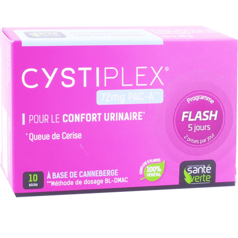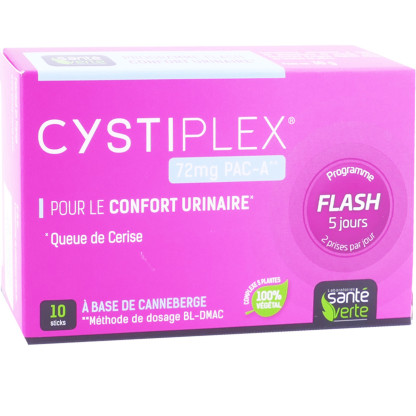 CYSTIPLEX® des LABORATOIRES SANTE VERTE discount, la qualité exclusivement distribuée en pharmacie dans votre parapharmacie en ligne à prix discount, dans un complément alimentaire conçu pour réduire les inconforts urinaires chez l’adulte en 5 jours.