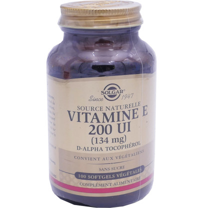VITAMINE E 200 UI (134 mg) D-alpha-tocophérol à prix discount, la qualité SOLGAR en gélules dans votre parapharmacie en ligne à prix discount, le complément alimentaire d'apport en Vitamine E.