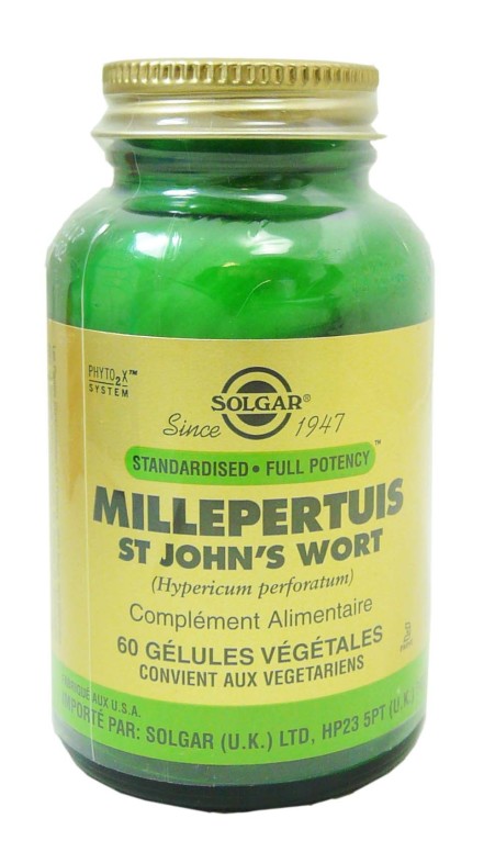 Le laboratoire SOLGAR conçoit des compléments alimentaires pour le bien-être de tous avec des ingrédients naturels et convenant aux végétariens pour les besoins de l’organisme.Ce complément alimentaire sous forme de gélules végétales, est très utilise lors de difficultés à s’endormir ou d’insomnies, de surmenages, de stress, de voyage,… Le millepertuis qui contient de l’hypericine mélangé et associé à la poudre brute de la plante, est un antidépresseur naturel qui va permettre de traverser les difficultés quotidiennes sereinement.