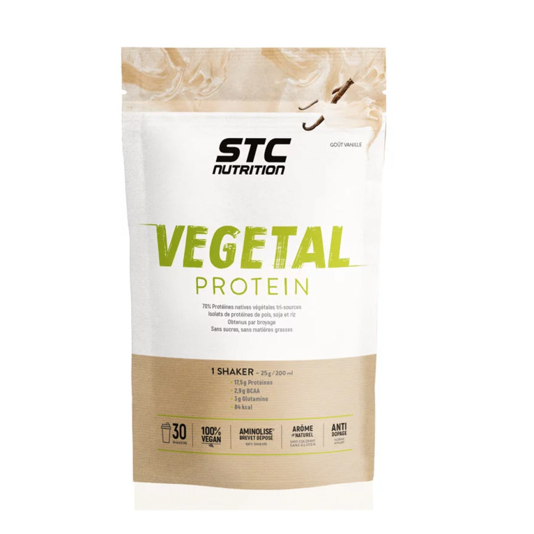 La gamme VEGAN ET GOURMAND de STC NUTRITION est destinée aux personnes végétariennes ou souhaitant consommer des produits 100% naturels aux protéines végétales et sans additifs, pour se faire plaisir tout en gardant son équilibre. VEGETAL Protein est un en-cas hyperprotéiné végétal sous forme de poudre à diluer à la bonne saveur vanille, riche en isolat de protéines 100% végétales de pois, riz et soja qui sont riche en acides aminés essentiels pour apporter une quantité de protéines suffisantes afin de préserver la masse et le tonus musculaire. En plus d'aider au renforcement musculaire, cet en-cas hyperprotéiné apporte des vitamines (B, C et PP) et minéraux aux propriétés antioxydantes et protectrices qui vont diminuer la fatigue pour préserver le tonus. VEGETAL Protein peut être consommé au petit-déjeuner, en en-cas, après une activité physique, ou encore comme alternative végétale à la whey. Sans aspartame - Sans lactose – Sans gluten