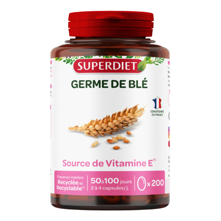 SUPERDIET GERME DE BLE 200 CAPSULES est en vente en ligne sur le site de votre parapharmacie à prix discount.