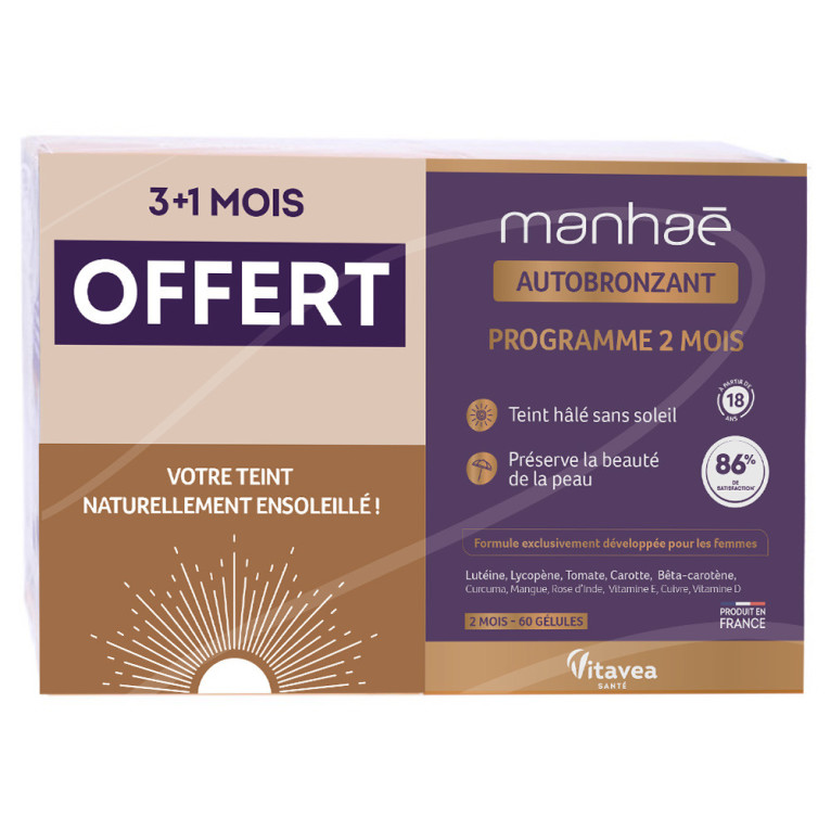 VITAVEA MANHAE AUTOBRONZANT LOT DE 2X60 GELULES est disponible en vente en ligne à prix discount. Le laboratoire Nutrisanté propose la gamme Vitavea