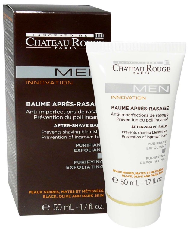 Le laboratoire CHATEAU ROUGE conçoit des produits de beauté pour les peaux noires, mates et métissées à base d’actifs végétaux pour leur plus grand confort. Le Baume après-rasage est un baume à base de zinc et de 5 végétaux concentrés ainsi que d’un extrait de papaye. Il va intensément hydrater la peau, la purifier et lutter contre l’apparition d’imperfections du rasage, diminuer la prolifération des boutons de rasage, et limite la pousse des poils incarnés sous la peau. Sa texture agréable pénètre rapidement à l’application pour laisser la peau douce et confortable après le rasage tout au long de la journée.