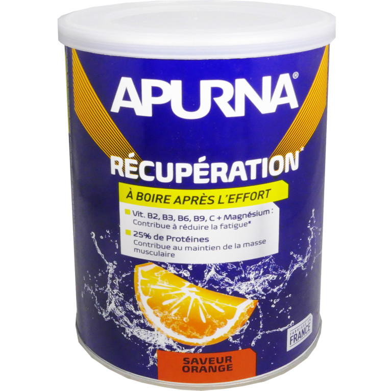 APURINA est une gamme de produits fabriqués en France, destinés à participer à la préparation et la récupération musculaire chez les sportifs. Les produits APURINA sont élaborés avec un concentré de protéines breveté issue du lait le Prolacta. Récupération Après l’effort est une boisson diététique en poudre à préparer, à prendre après le sport, à base de protéines de lait, de vitamines (dont B12 et B1) et de glucides. Ces nutriments vont participer au métabolisme normal des protéines ainsi que du métabolisme énergétique, réparer la masse musculaire qui a été sollicitée pendant l’effort, et diminuer la fatigue après l’effort pour une récupération plus rapide. Cette boisson aromatisée à l’orange sera un plaisir à consommer après l’effort.