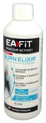 Burn Elixir d’EAFIT Minceur Active, est un complément alimentaire à base de thé vert qui aide à brûler les graisses et à prévenir l’accumulation des graisses, et de choline, qui contribue à réguler le métabolisme des lipides.