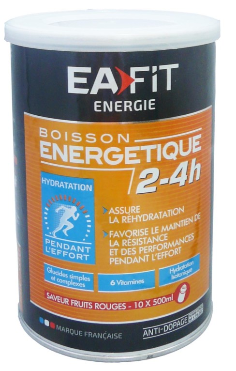 Le laboratoire EAFIT a conçu des compléments alimentaires à destination des femmes et des hommes sportifs pour améliorer les performances physiques conforme anti-dopage en partenariat avec des médecins du sport et nutritionnistes. La boisson énergétique 2-4H d’EAFIT Energie est un complément alimentaire sous forme de poudre à diluer à base de vitamines B et C, sodium, et glucides simples et complexes. Ces vitamines et minéraux vont aider l’organisme à maintenir des performances optimales pendant l’effort en participant au bon fonctionnement du système immunitaire et au métabolisme énergétique tout en favorisant une bonne hydratation pendant l’effort en augmentant l’absorption de l’eau sur une longue durée, apporter de l’énergie immédiatement et pour longtemps, protéger les cellules de l’organisme du stress oxydatif, et diminuer la fatigue pendant l’effort. Cette poudre à diluer aromatisée aux fruits rouges sera un plaisir à consommer pendant l’effort. Ce produit est conforme à la norme AFNOR NF V94-001 ANTIDOPAGE.