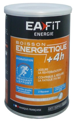 Le laboratoire EAFIT a conçu des compléments alimentaires à destination des femmes et des hommes sportifs pour améliorer les performances physiques conforme anti-dopage en partenariat avec des médecins du sport et nutritionnistes. La boisson énergétique +4H d’EAFIT Energie est un complément alimentaire sous forme de poudre à diluer à base de vitamines B, glucides simples et complexes et électrolytes. Ces vitamines et minéraux vont aider l’organisme à maintenir des performances optimales pendant l’effort de longue durée (triathlon, marathon,…)en participant au bon fonctionnement du système immunitaire et au métabolisme énergétique tout en favorisant une bonne hydratation pendant l’effort en augmentant l’absorption de l’eau sur une longue durée, apporter de l’énergie immédiatement et pour longtemps, protéger les cellules de l’organisme du stress oxydatif, et diminuer la fatigue pendant l’effort. La boisson énergétique +4 heures peut être également prise 3 jours avant l’effort ou la compétition comme « boisson d’attente ». Ce produit est conforme à la norme AFNOR NF V94-001 ANTIDOPAGE.