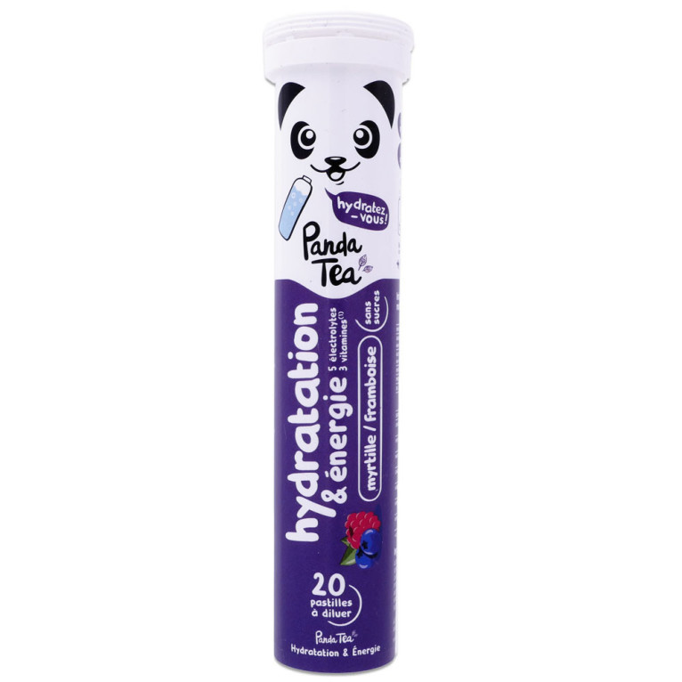 PANDA TEA HYDRATATION & ÉNERGIE MYRTILLE FRAMBOISE 20 PASTILLES : électrolytes et vitamines en vente en ligne, sur le site de votre parapharmacie à prix discount. Offrez à votre corps un véritable coup de fouet avec ce complément alimentaire sous forme de pastilles délicieuses qui allient hydratation et énergie.