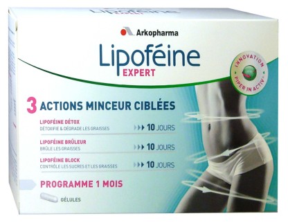Lipoféine Expert Programme d’ARKOPHARMA dans votre parapharmacie en ligne à prix discount, 3 compléments alimentaires qui aident à perdre du poids en limitant le stockage des masses graisseuses et des sucres dans l’organisme, sur une cure de 1 mois.