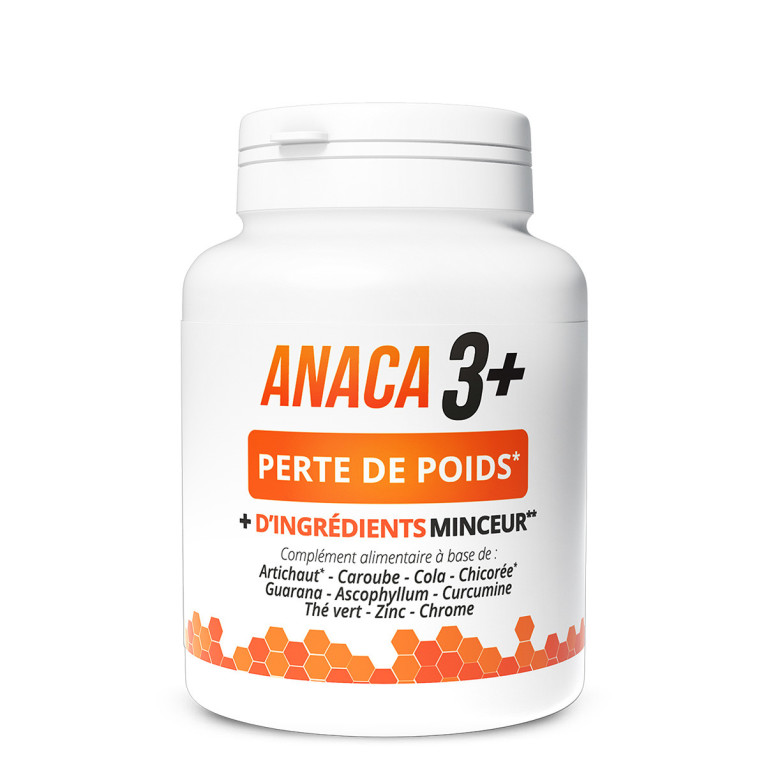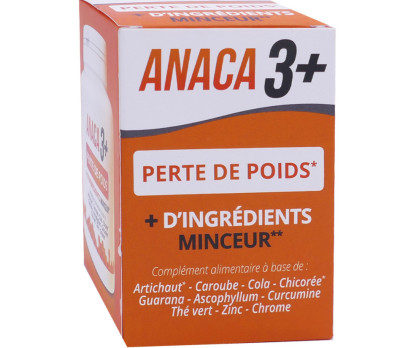 ANACA3+ Perte de poids dans votre parapharmacie en ligne à prix discount, le complément alimentaire à base d’actifs végétaux & Minéraux (Artichaut, Caroube, Cola, Chicorée, Guarana, Ascophyllum, Curcumine, Thé Vert, Zinc, Chrome)