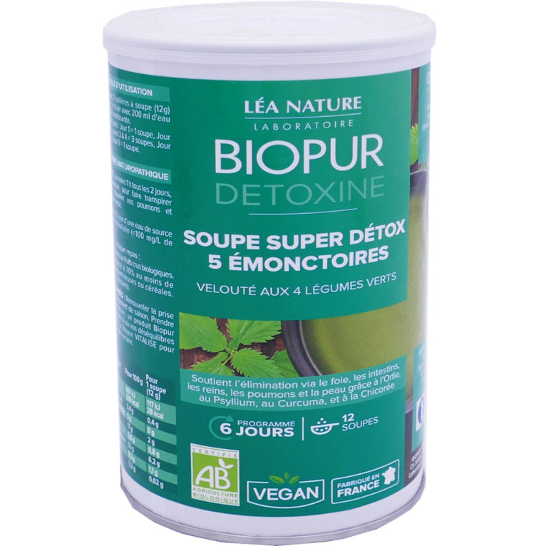 BIOPUR Détoxine Soupe Super Détox 5 Emonctoires des laboratoires LEA NATURE discount, un velouté composé de 4 légumes verts dans votre parapharmacie en ligne à prix discount.