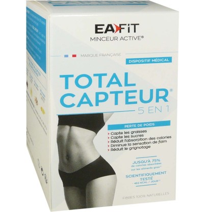 Le laboratoire EAFIT a conçu des compléments alimentaires à destination des femmes et des hommes sportifs pour améliorer les performances physiques conforme anti-dopage en partenariat avec des médecins du sport et nutritionnistes. Total Capteur 5 en 1 d’EAFIT est un dispositif médical 5 en 1 qui va agir sur les graisses, les sucres, les calories, les grignotages et la sensation de faim. Sa formule brevetée contient un complexe de de fibres 100% naturelles : carotte, avoine, pomme sélectionné pour capter les graisses, les sucres et les calories, et diminuer la sensation de faim et de grignotage. Grâce à Total Capteur 5 en 1, jusqu’à 75% de calories des aliments gras sont absorbées et jusqu’à 462 calories par jour sur deux repas complets, pour perdre du poids et l’équilibrer.