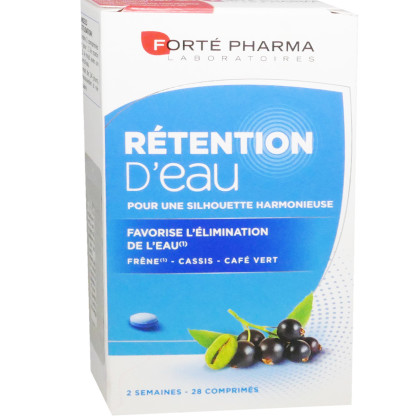 Depuis 1999, les Laboratoires FORTÉ PHARMA développent des compléments alimentaires efficaces et innovants, aux formules issues de la recherche en nutrition cellulaire, pour contribuer aux ressources des utilisateurs.L’univers Minceur de FORTÉ PHARMA propose des produits conçus pour favoriser la perte de poids en complément d’une alimentation adaptée et d’une activité sportive avec 4 gammes de produits et compléments alimentaires dédiés: Perdre du poids, Drainer et détoxifier, Gérer son poids et Minceur ciblée. RETENTION D’EAU de FORTÉ PHARMA est un complément alimentaire conditionné sous forme de comprimés, spécialement formulé pour favoriser la perte de poids en drainant l’organisme et en stimulant les fonctions d’élimination. La formule innovante de RETENTION D’EAU associe des extraits de frêne, de cassis et de café vert. Le frêne favorise l’élimination d’eau. Sans gluten, sans gélatine, Convient aux végétariens.