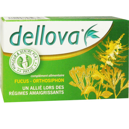 DELLOVA MINCEUR & VENTRE PLAT est un complément alimentaire sous forme de comprimés, composé d’extraits de plantes (Fucus, Orthosiphon). Le fucus contribue à la perte de poids. La formule est complétée par de l'Othosiphon. DELLOVA MINCEUR & VENTRE PLAT est un allié lors des régimes amaigrissants. Il est sans dioxyde de titane, sans paraben, sans colorant.