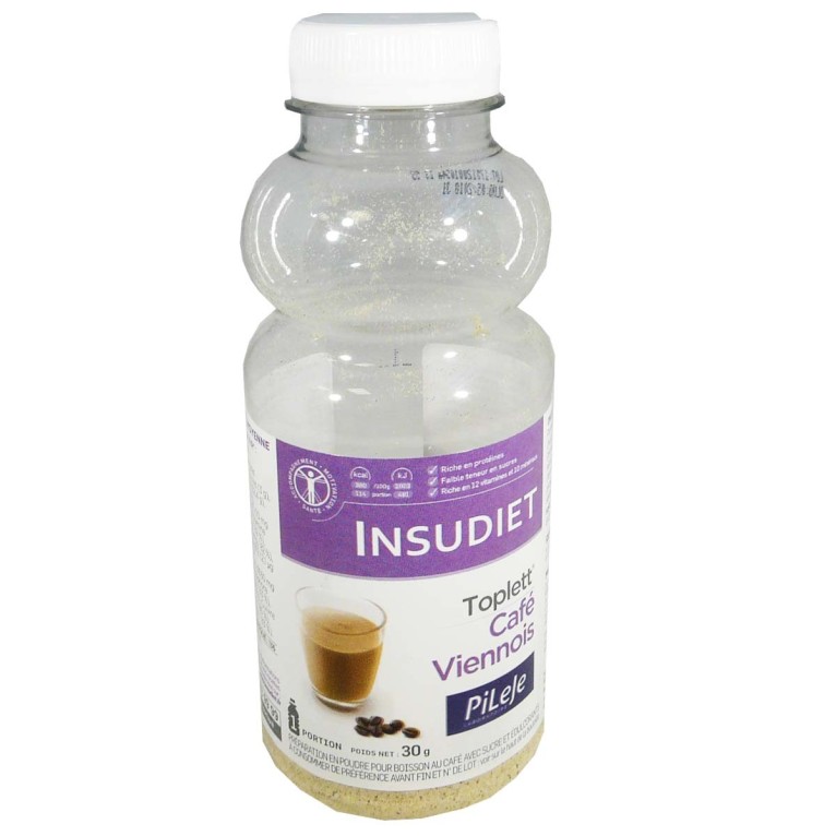 Les produits INSUDIET des laboratoires PILEJE sont élaborés en collaboration avec des professionnels de santé, à base de protéines et nutriments essentiels pour retrouver un bon équilibre alimentaire. Toplett Café viennois INSUDIET est une préparation instantanée hyperprotéinée hypocalorique à consommer au moment de la collation, avec sucres et édulcorants, pour retrouver un bon équilibre alimentaire dans le cadre d’un régime alimentaire et préserver sa masse musculaire. Cette préparation qui se substitue à un repas, est riche en 12 vitamines 10 minéraux, et protéines, pauvre en matières grasses et en sucres, afin de faire un régime minceur en douceur tout en préservant sa santé. Prêt en seulement quelques minutes en rajoutant de l’eau, ce Café viennois ravira les amateurs de caféine !