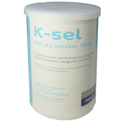 Depuis 20 ans, les laboratoires PILEJE développent des gammes complètes de compléments alimentaires de haute technicité, apportant des réponses de qualité aux consommateurs soucieux de leur santé et leur bien-être. La gamme Alimentation fonctionnelle propose des produits complémentaires d’une alimentation santé, adaptés à chaque besoin spécifique : maintien du capital osseux, restauration du confort digestif, retour de l’énergie… K SEL est un sel de cuisine contenant moins de sodium qu’un sel de table traditionnel, qui apporte un supplément de potassium organique pour subvenir aux besoins de l’organisme et ainsi favoriser le bon fonctionnement de la pression artérielle. Le potassium assure le bon fonctionnement général de l’organisme en maintenant une bonne pression sanguine et participe à l’équilibre acido-basique. K SEL remplacera le sel de table traditionnel et prendra soin de l’organisme.