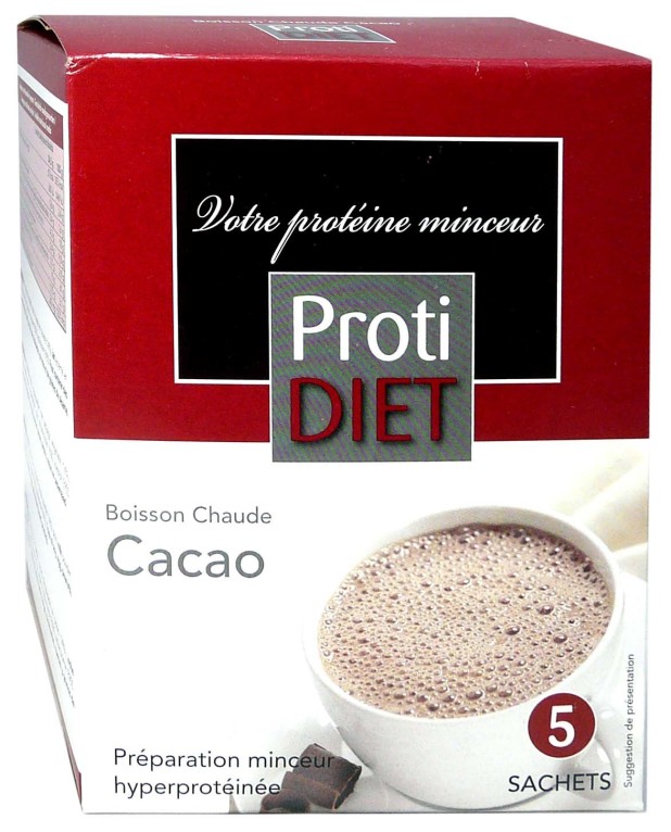 PROTIDIET est une marque minceur reconnue dans le monde de la santé, qui propose des produits de régimes hyperprotéinés (potages, crèmes desserts,…) afin d’aider à la perte de poids lors d’un régime équilibré sans perdre de masse musculaire. La boisson chaude au cacao est une boisson diététique hypocalorique hyperprotéiné sans gluten, riche en vitamines, minéraux et en protéines, est pauvre en matières grasses et en sucres afin d’éliminer la masse graisseuse en excès dans l’organisme, pour des résultats efficaces au cours d’un programme minceur. Son bon goût cacao fera fondre de plaisir tout en prenant soin de sa ligne ! Rapidement, les kilos superflus disparaissent et le poids va se stabiliser.