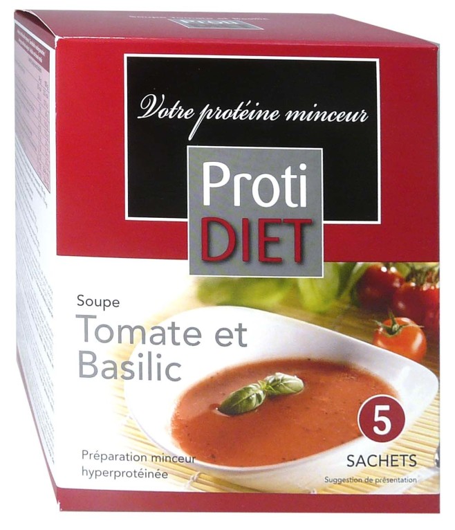 PROTIDIET est une marque minceur reconnue dans le monde de la santé, qui propose des produits de régimes hyperprotéinés (potages, crèmes desserts…) afin d’aider à la perte de poids lors d’un régime équilibré sans perdre de masse musculaire. Avec sa saveur gourmande à la tomate et au basilic, le potage en forme de poudre riche en protéines, est pauvre en matières grasses et en sucres afin d’éliminer la masse graisseuse en excès dans l’organisme, pour des résultats efficaces au cours d’un programme minceur. Avec sa saveur gourmande, la prise de ce repas sera un vrai plaisir pour atteindre son objectif ! En 1 semaine, les kilos superflus disparaissent (jusqu’à 4,5kg) et le poids va se stabiliser.