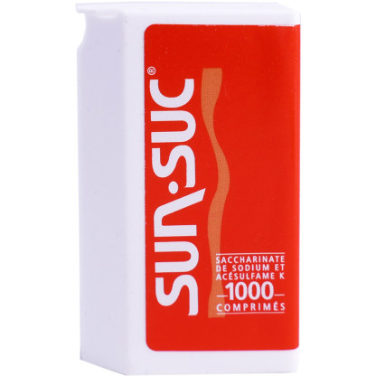 SUN SUC est un édulcorant de table à base de saccharinate de sodium qui permet de remplacer le sucre traditionnel. Le pouvoir édulcorant d'un comprimé équivaut à un morceau de sucre (environ 5g) avec un apport calorique à 0Kcal.