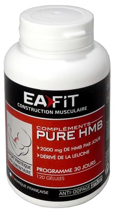 Le laboratoire EAFIT a conçu des compléments alimentaires à destination des hommes sportifs pour améliorer les performances physiques conforme anti-dopage en partenariat avec des médecins du sport et nutritionnistes. Ce complément sous forme de gélules, composé d’Hydromethylbutyrate (HMB) de calcium qui est un dérivé de la leucine (acide aminé essentiel), permet rapidement de prendre et augmenter la masse musculaire sèche sans prendre de poids et de potentialiser ses performances sportives lors d’efforts intenses tout en limitant le catabolisme. Rapidement la masse musculaire sèche se développe pour de meilleures performances physiques.
