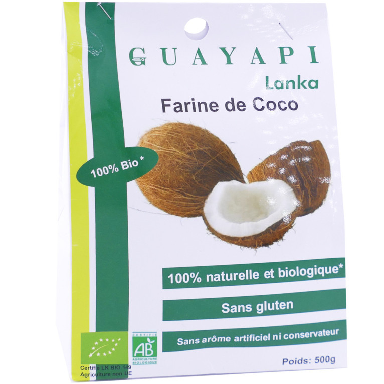 GUARAYAPI est un laboratoire qui développe des produits, compléments alimentaires et super-aliments à partir de matières premières biologiques et d’actifs 100% naturels issue des terres d’Amazonie et du Sri Lanka qui respectent la biodiversité et les hommes. Ces produits sont principalement à base de waranà appelé aussi guarnà pour ses vertus stimulantes physiques et intellectuelles. Farine de Coco Bio est une farine qui va aromatiser les plats salés ou sucrés ! Fabriquée à partir de l’extrait d’huile de chair de la noix de coco, elle est dégraissée par pression puis broyée afin d’obtenir la texture d’une farine. 100% naturelle et bio la farine de coco est riche en fibres et acides gras essentiels. Elle va agir sur la flore intestinale et facilitera le transit. Naturelle et biologique, elle ne contient ni gluten, ni cholest et possède un indice glycémique faible.