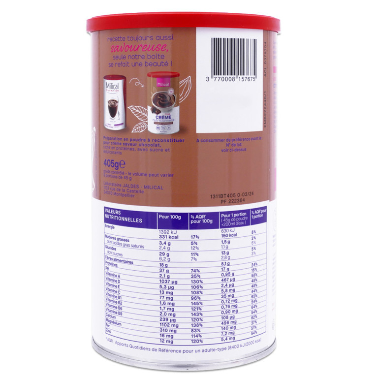 MILICAL MA CREME NUTRITIONNELLE SAVEUR CHOCOLAT 405G est disponible en vente en ligne sur le site de votre parapharmacie à prix discount.
