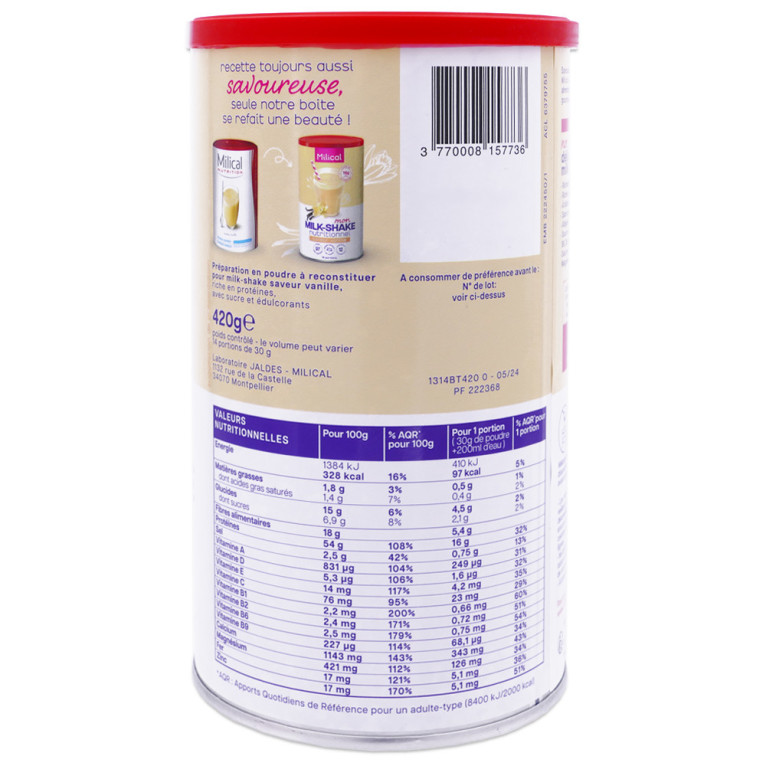 MILICAL MON MILK-SHAKE NUTRITIONNELL SAVEUR VANILLE 14 PORTIONS