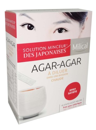 Depuis plus de 40 ans, MILICAL développe des produits conçus pour favoriser le contrôle de l’apport calorique, la perte de poids et accompagner avec succès toutes les personnes qui s’engagent dans une démarche minceur. Les gammes compléments alimentaires proposent des solutions ciblées pour accompagner efficacement les régimes. Agar-Agar de Milical est un complément alimentaire conditionné sous forme de sticks à diluer, spécialement conçu pour favoriser la perte de poids en augmentant la sensation de satiété et en réduisant les envies de grignotages. L’agar-agar, composant essentiel de ce complément, est issue d’une algue rouge traditionnellement utilisée au japon pour ses vertus minceurs. Cet actif riche en fibres solubles, se transforme en gel au contact de l’eau et gonfle dans l’estomac, augmentant le sentiment de satiété et limitant les grignotages intempestifs. Agar-Agar de Milical est l’allié indispensable de toute démarche minceur.