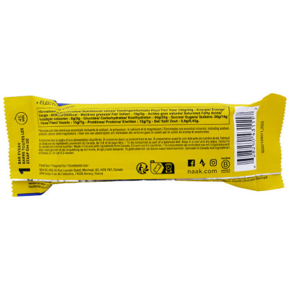 Naak propose une barre énergétique conçue pour soutenir les performances des sportifs. Avec 200 calories par barre, elle contient 20g de glucides, un mélange de glucides simples et complexes, qui contribue à fournir de l'énergie rapide et durable. Les 7g de protéines présentes participent au maintien et à la croissance de la masse musculaire. Les BCAAs, à hauteur de 840mg, soutiennent la synthèse protéique. Les électrolytes, incluant 405mg de sodium, potassium et calcium, participent au fonctionnement normal des muscles. Le goût délicieux de beurre de cacahuètes et chocolat offre une expérience gustative agréable pour accompagner vos efforts.