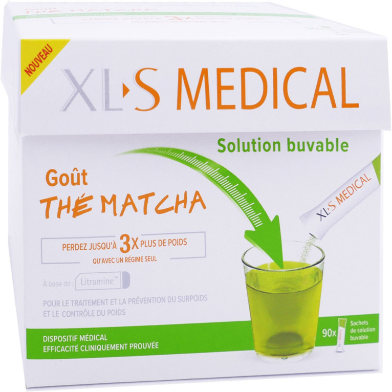 XL-S Médical Solution Buvable Goût Matcha discount d’OMEGA PHARMA, un complément alimentaire sous forme de sticks aromatisés à dissoudre, conçu pour aider efficacement à la perte rapide et au contrôle du poids, dans votre parapharmacie en ligne à prix discount.