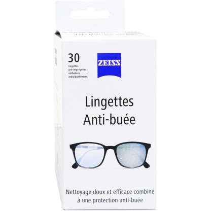 Les Lingettes Anti-buée de ZEISS en microfibres sont conçues pour nettoyer tous les types de verres des lunettes en douceur et limiter la formation de buée jusqu’à 72 heures grâce à des tensioactifs spécifiques. Elles peuvent également être utilisées sur les portables, jumelles, écrans d’ordinateurs, appareils photos, etc.