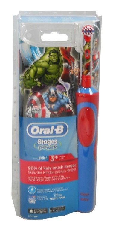Brosse à dents électrique Stages Power « Avengers» d’ORAL B, la brosse à dents qui est conçue pour rendre le brossage des enfants de + de 3 ans plus agréable.