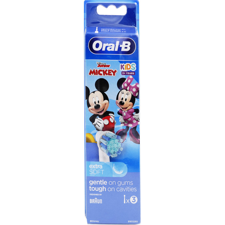 Oral-B est leader sur le marché international de la brosse à dents avec une large offre de produits destinés à l’hygiène bucco-dentaire, si performants que les dentistes eux-mêmes utilisent la marque Oral-B pour leur usage personnel. Oral-B a conçu une brosse à dents électrique spécialement dédiée aux enfants, et ces brossettes de rechange aux poils extra-souples assurent un nettoyage très doux en respectant les gencives. La rangée surélevée des poils bleus est conçue pour nettoyer les surfaces de mastication plus disposées aux carries. Pour les enfants de 3 ans et plus.