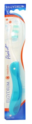 La marque ELGYDIUM des laboratoires Pierre Fabre est spécialisée dans les produits d’hygiène bucco-dentaire (dentifrice, brosse à dents, soins,…) destiné à toute la famille. La brosse à dents équipée d’un étui amovible pour la garder toujours propre pendant le transport, aux poils arrondis nettoie tout en douceur les dents pour éliminer la plaque dentaire avec ses brins courts, et les espaces interdentaires avec ses brins longs. Sa tête étroite et ovale permet un brossage minutieux en passant dans tous les endroits même les plus inaccessibles. Pliable, la brosse à dents se range partout pour un transport facile (voyage, bureau,…).