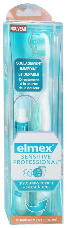 Stylo anti-sensibilité : Sa technologie Pro-Argin (brevet ELMEX) va boucher les canaux des nerfs dentaires sensibles pour soulager immédiatement les douleurs liées à la sensibilité dentaire. Le stylo petit format s’emporte avec la brosse à dents pour une hygiène dentaire parfaite.