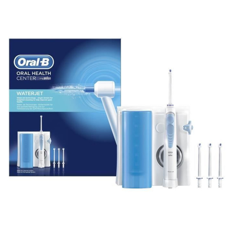 WATERJET Cleaning Hydropulseur est un système de nettoyage qui nettoie très efficacement et en douceur les gencives et les espace entre les dents pour compléter le brossage des dents quotidien. Sa technologie va grace à la projection de l’eau, permettre d’éliminer les résidus alimentaires qui peuvent être dans les espaces interdentaires et de masser les gencives en douceur. L’hydropulseur WATERJET Cleaning permet de régler le système de pression de l’eau (pression faible, pression intense) et de choisir le type de jet voulu : mono-jet (délogner les résidus alimentaires) ou multi-jet (massage et stimulation douce des gencives). Utiliser l’hydropulseur Waterjet de Oral-B en complément du brossage quotidien avec ou sans bain de bouche, permet de préserver des gencives saines et des dents propres